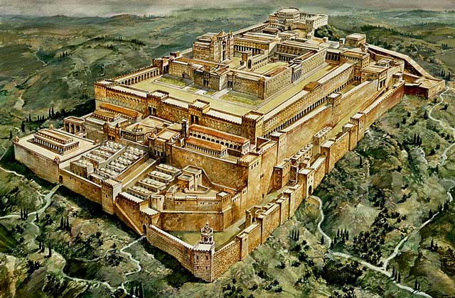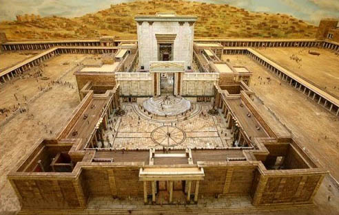 Попробуем представить себе храм Иерусалимский 2 тысячи лет тому назад, или, как его называли, храм Ирода. Строительство его было начато в 19-ом году до рождества Христова, закончено в основном в 27-ом году нашей эры, а полностью храм был достроен в 63 году после Рождества Христова, т.е. за 7 лет до его уничтожения.