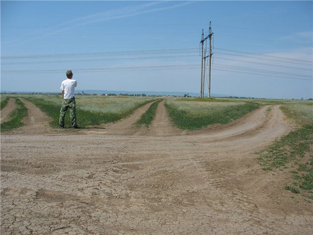 Вообще-то говоря, лучшей иллюстрацией для нескольких дальнейших шагов в наших раздумьях будет не «Витязь на распутье» (где, собственно говоря, нет никакого распутья!), а вот такой перекрёсток, на котором нужно принять решение, по какой из трёх