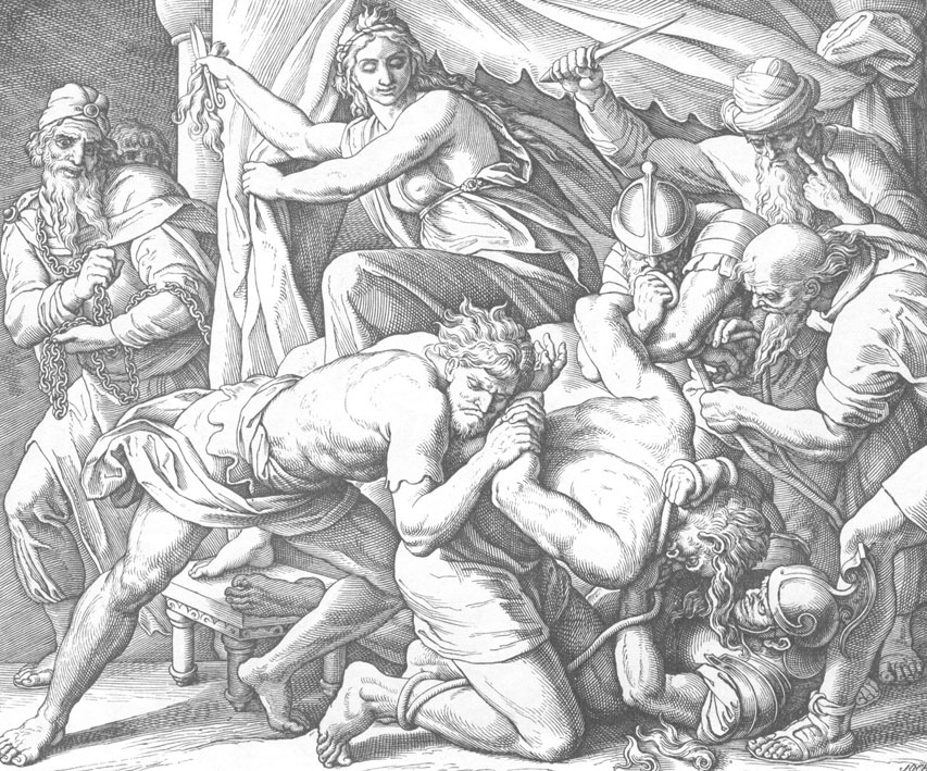 Книга Судей, глава 16, стихи 19-21