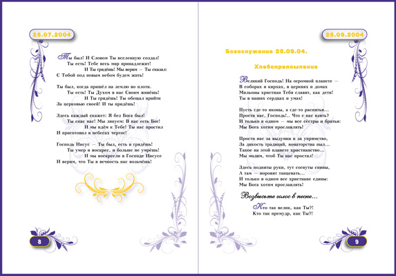 Вот так выглядят страницы 8-го тома "Славословия" — 318 молитв в стихах на 202 страницах:
