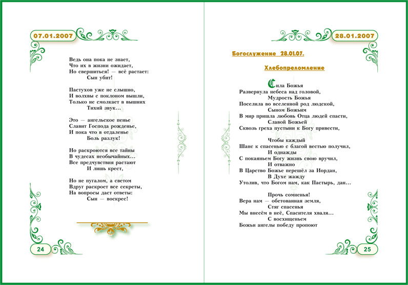 А также праздничные: Рождественские, Пасхальные, на Пятидесятницу, на Праздник Урожая.