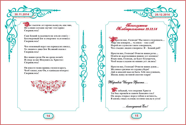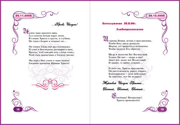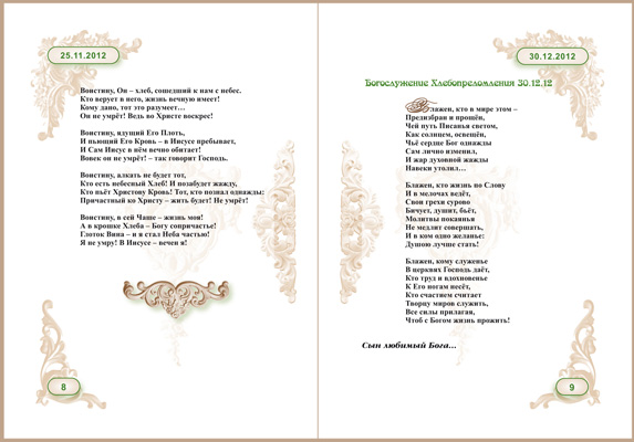 Вот так выглядят страницы 1-го тома "Славословия", в который вошли 270 молитв в стихах на 197 страницах: