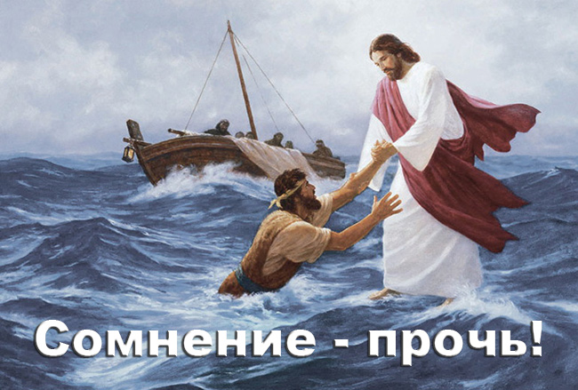 Иисус тотчас простер руку, поддержал его и говорит ему: маловерный! зачем ты усомнился?»